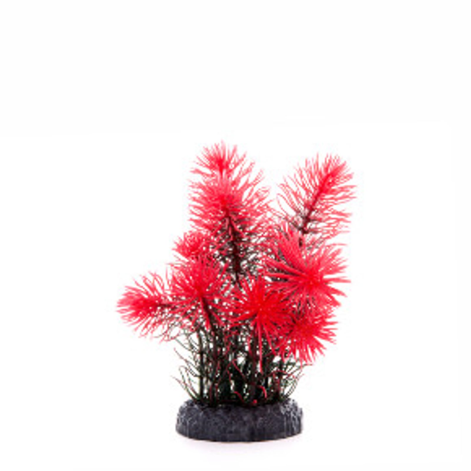 Akvarijní plastová rostlinka s plastovým podstavcem.
