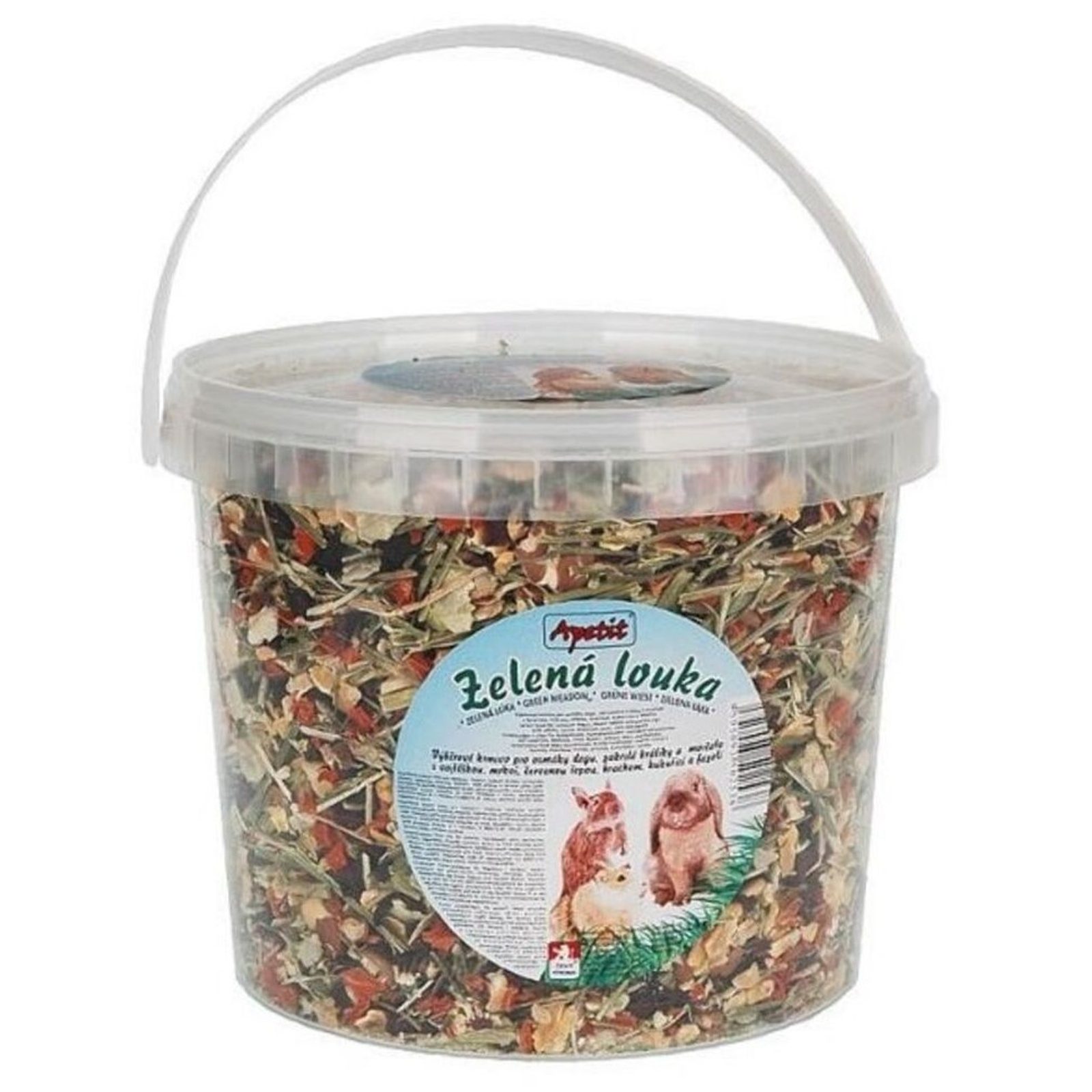 Apetit zelená louka - speciální doplňkové krmivo pro hlodavce složené ze sušených plodin.Složení: luční byliny, kukuřičné vločky, hrachové vločky, mrkvové vločky, sojové vločky, fazolové vločky, vločky z červené řepy.