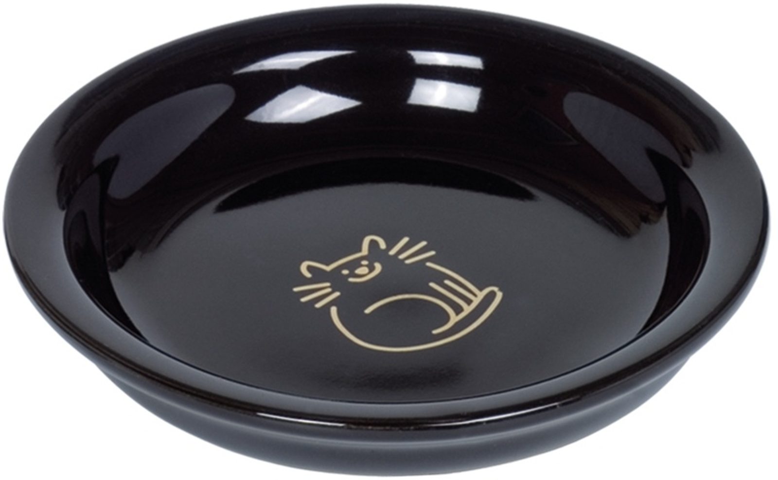 Barva: černá, zlatý dekor, vzor sedící kočky na dně misky