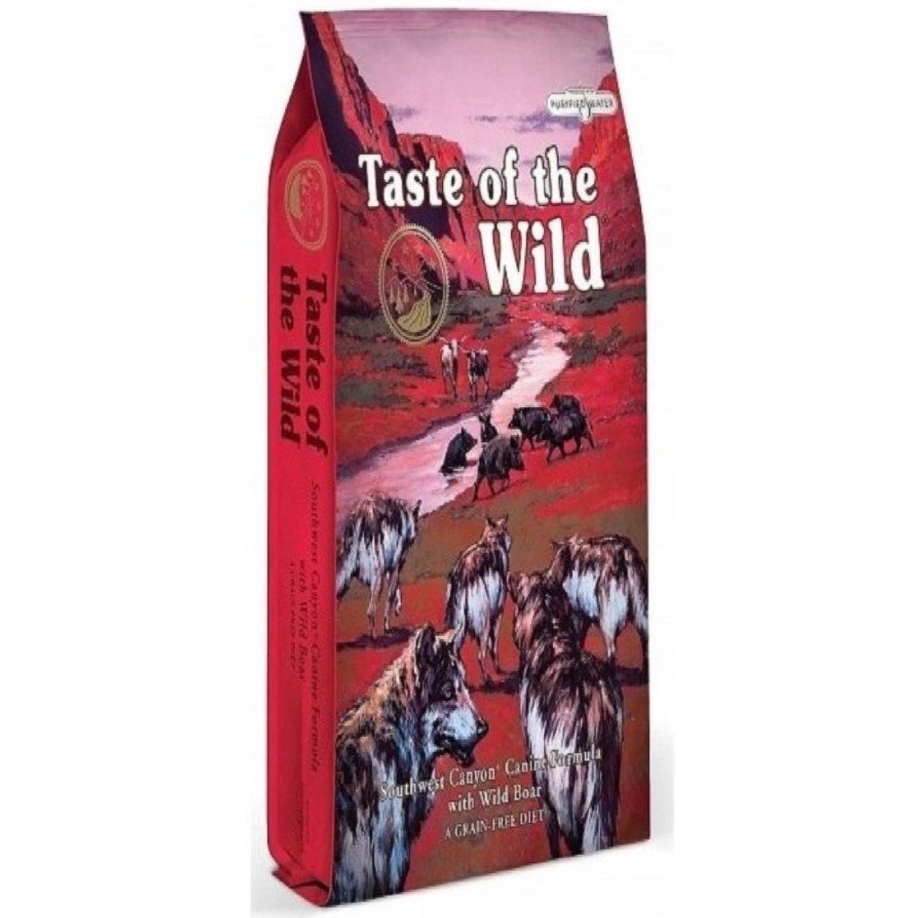 Kompletní krmivo pro psy z čerstvého hovězího masa a divokého prasete chovaného na texaských farmách je exkluzivní kombinací vůně a chutí, kterou váš pes pozná pouze s granulemi Taste of the Wild.Kompletní krmivo pro psy všeho věku a všech plemen (ALL LIVE STAGES). Taste of the Wild propočítal vhodné dávkování tak, aby regulovalo příjem kalorií do organismu psa a bylo vhodné, jak pro malá, střední i velká plemena.Složení: hovězí maso (čerstvé hovězí maso), cizrna, jehněčí moučka (dehydrované jehněčí maso), řepkový olej, vaječné produkty sušené, divočák (čerstvé maso z divočáka), rybí moučka (dehydrované maso z mořských ryb), pivovarské kvasnice, vedlejší produkty z rajčat, lněné semeno, přírodní aroma (kuřecí játra a kuřecí srdce), chlorid sodný 0,25%, sušený kořen čekanky, rajčata, borůvky, maliny, extrakt z juky, probiotika: (enterococcus faecium, lactobacillus acidophilus, lactobacillus casei, lactobacillus plantarum, trichoderma longibrachiatum.)Analytické složky: hrubý protein 29%, hrubé oleje a tuky 15%, hrubý popel 8,5%, hrubá vláknina 4,5%, vlhkost 10%, vápník 1,9%, fosfor 1,1%, omega 6 mastné kyseliny 2,4%, omega 3 mastné kyseliny 0,3%.Doplňkové látky: vitamín A 11,500 IU/kg, vitamín D 800 IU/kg, vitamín E 175 IU/kg, chelátová forma železa hydrát 60mg/kg, chelátová forma mědi hydrát 7 mg/kg, síran železnatý 60 mg/kg, síran měďnatý 7 mg/kg, jodid draselný 1,5 mg/kg, chelátová forma manganu hydrát 20 mg/kg, oxid manganatý 20 mg/kg.Energetická hodnota: 3 600 kcal/kg