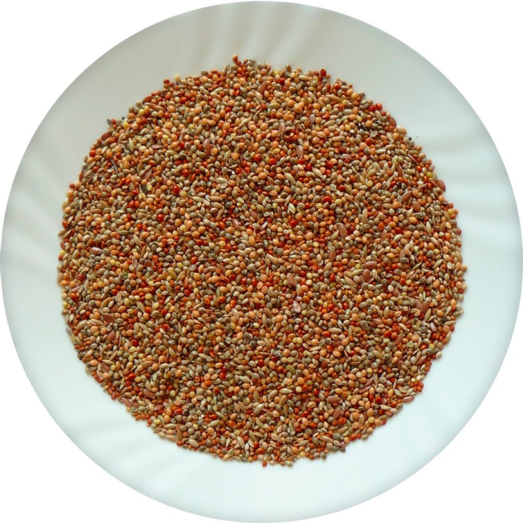 Složení: proso seté (zelené, žluté, červené), oves setý, lesknice, len.